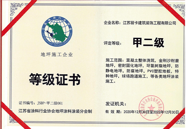 江蘇麗卡建筑裝飾工程有限公司是一家專業化、多元化公司;公司致力于工業地坪材料工程和施工場地的開發設計、銷售施工及保養維護。